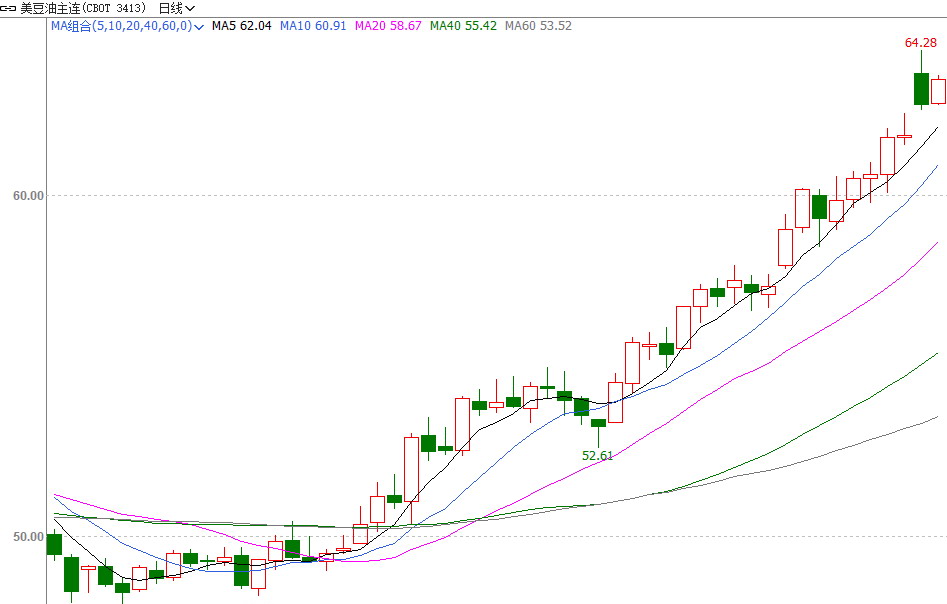 图为CBOT豆油期货主力合约走势