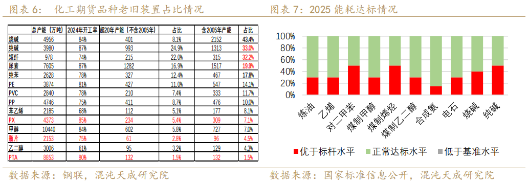 我们倾向于化工反内卷,也存在品种优先区别。梳理当前的潜在抓手看:一是7-8月进行的老旧装置摸排,超20年老旧装置后续出淘汰方案的可能性较大,对氯碱、农化影响可能较大。二是能耗,但参照2023年标准,多数化工行业已达,再通过大幅提高能耗标准进行淘汰可能性不大。三是是行业自律,因为要有序退出,不一刀切。考虑到品种产能周期(烯烃及下游过剩但仍在高投产周期,芳烃刚过剩投产偏尾声)、需求情况(纺织服装需求增速稳定)以及行业企业格局(行业集中度高,一体化程度高,且其产业链较单一),我们认为目前商品期货里,PTA聚酯行业的反内卷潜力较大。