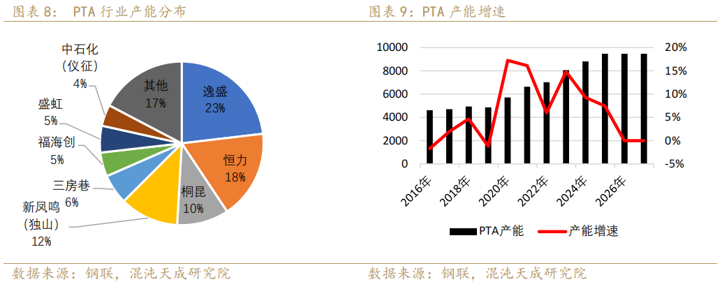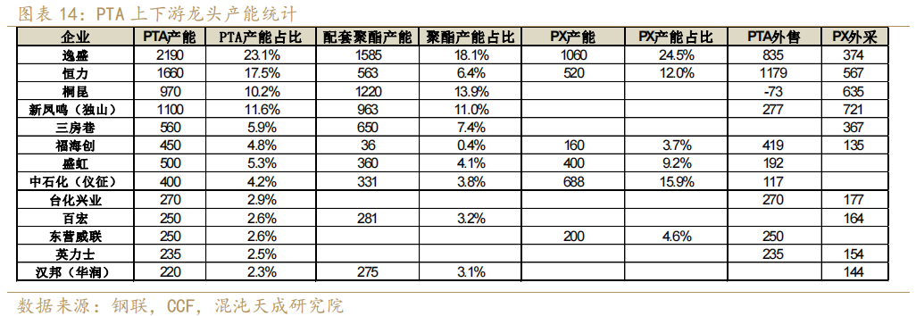 最后我们从整个产业链来看,PX投产受限,PTA、聚酯自身投产进入尾声,终端需求稳定;中下游的扩产进入尾声,未来上游PX的投产多是增强国内自给率和一体化需求,石化稳增长方案中,仍明确对PX新增产能有调控要求。而且从产业链一体化来看,行业龙头企业有极强的规模优势,PTA龙头企业前八家,其上游PX及聚酯行业产能占比也在65%。(产业链老旧产能占比不高见图6,且目前多数老旧小装置已处于停车检修状态,实际自然出清已较充分,行业产业集中度比计算的更高。