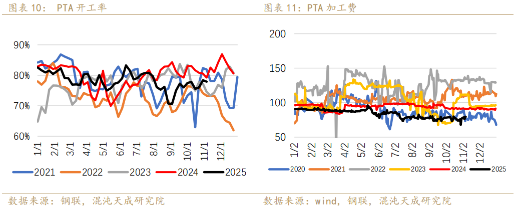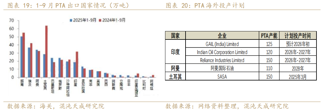但未来两三年,印度和北美仍有超500万吨PTA装置有投产计划。虽近期印度取消对PTA的BIS认证利好出口,同时国内PTA产业有一体化产业集群优势,但随着土耳其、印度投产逐步落地,出口压力仍较大,但不影响对上端需求分流及终端出口。另一个角度说只是PTA压力越大,行业反内卷的推进的可能性越大。