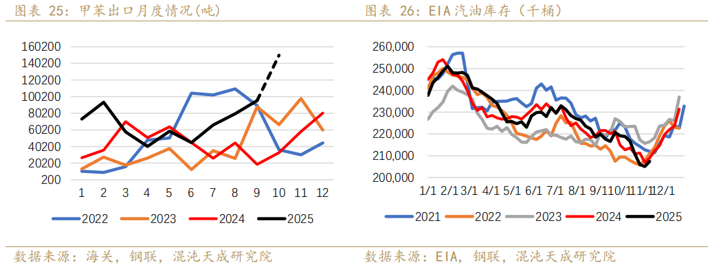 总结,我们认为PX在明年二季度存在硬缺口产业链有成本支撑,而PTA存在较大反内卷潜力,同时调油驱动已有启动苗头,原油震荡概率上升,因此PX、PTA存在供需调油、反内卷、原油在明年二季度共振发力的可能。适合作为化工板块重点关注对象。