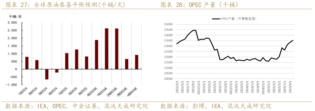 展望2026年原油过剩格局仍未改变,特别在上半年为过剩最严重时期,仍存在继续下跌的驱动。但原油随着下半年边际压力放缓,估值驱动可能有所变化:一是OPEC+的剩余产能已不再充足,而地缘导致的供应不稳定仍在上升,且地缘的计价还未充分,Q1暂停增产或有所预示。二是原油距离成本支撑空间已不大;非OPEC贡献近年主要增量,但其边际成本更高,或随着价格继续走弱而有所体现。三是类似今年,超预期的需求可能仍会延续。